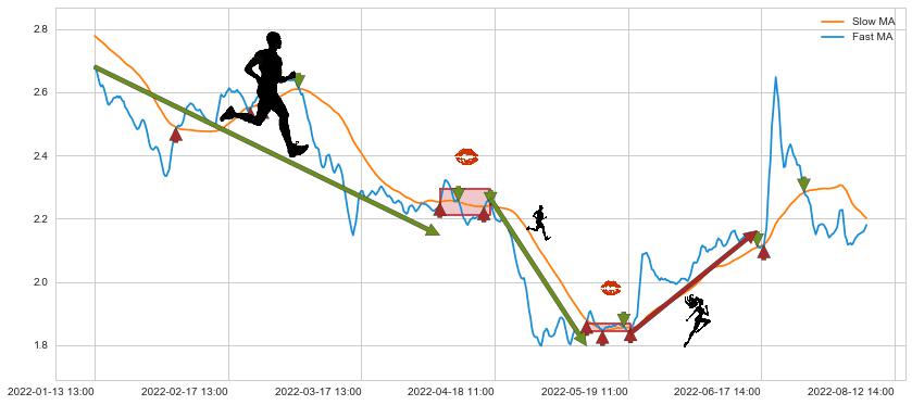 01-13 13:00至04-06 11:00 慢线与快线呈空头排列, 慢线与快线接触少,无缠绕