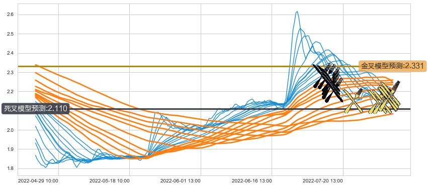 ➢ 55小时均线于(07-08 14:00: 2.280)形成【死叉】基于【死叉历史模型】预测死叉后最低波谷价格: 2.169, 死叉后最低价格2.090,已经下跌超出预测最低波谷价格, 预期反弹