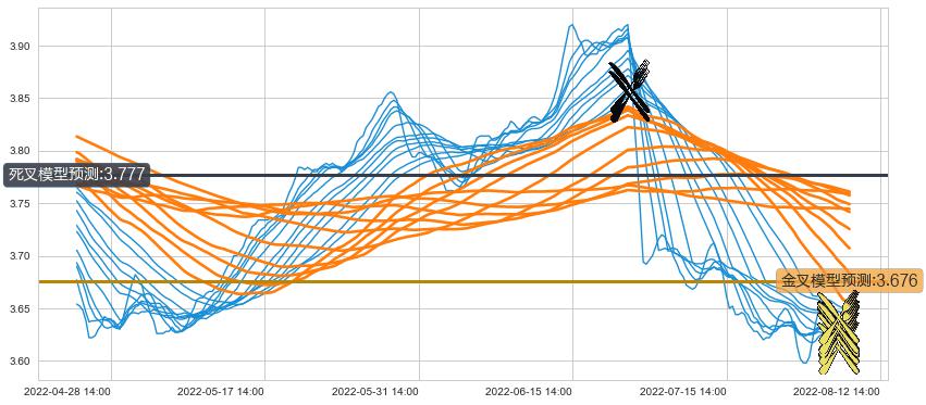 ➣ 60小时均线于(06-23 14:00: 3.852)形成【死叉】基于【死叉历史模型】预测死叉后最低波谷价格: 3.772, 死叉后最低价格3.560,已经下跌超出预测最低波谷价格, 预期反弹