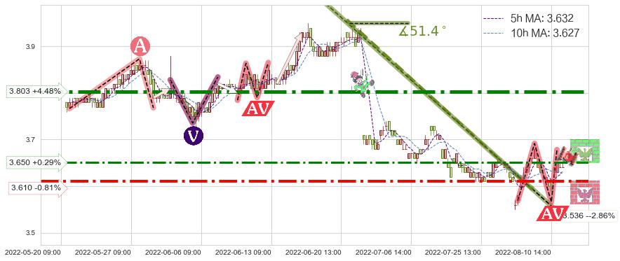 ♘ 阻力价格位3.650,可信任强度55.55%,距离最后交易2022-08-12 14:00形成的收盘价格3.640相差 +0.29%