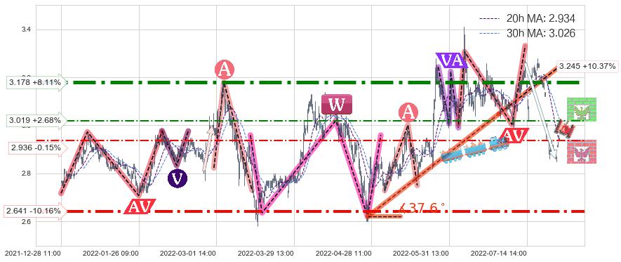 ♘ 阻力价格位3.019,可信任强度41.59%,距离最后交易2022-08-12 14:00形成的收盘价格2.940相差 +2.68%