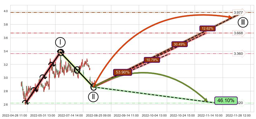 ➢ 【仅预测突破】最后价格:2.940与预测突破价格:3.169→【空间较大】后续最小【整理】第一目标价格→(09-01:14: 3.749 )