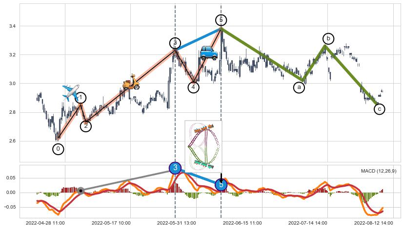 ➣ 波浪理论:猜想达到c点后小回调终止反转上涨 → 上涨 → 【拐点】临近 → 阶段均值回复结束后继续大周期趋势跟踪