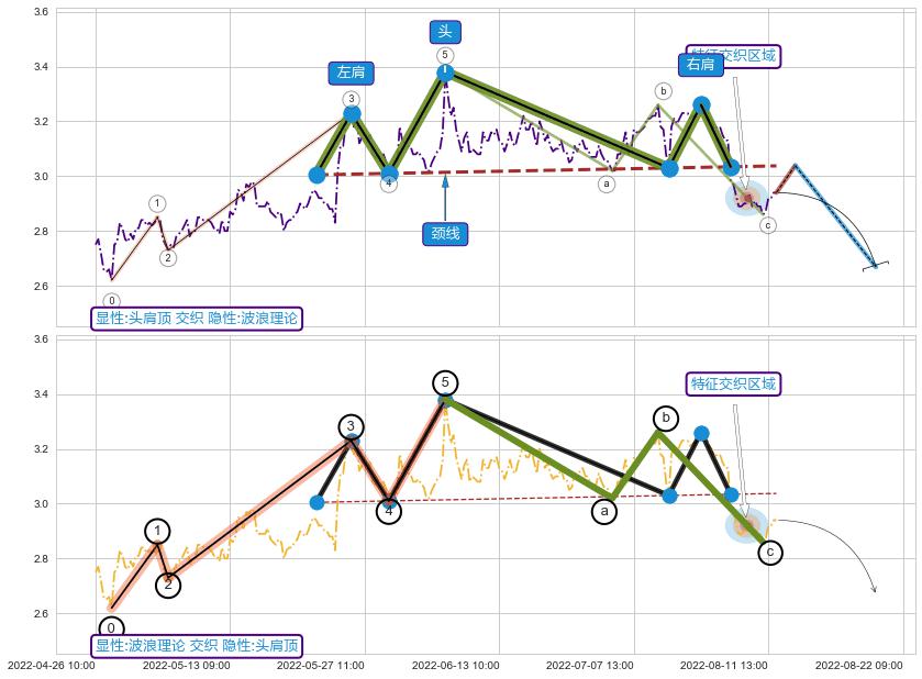 ➣ 下跌螺旋桨 + 头肩顶支撑破位转换阻力下跌信号叠加后【目标达成率】中等,【看空】信号叠加【存续影响中等】