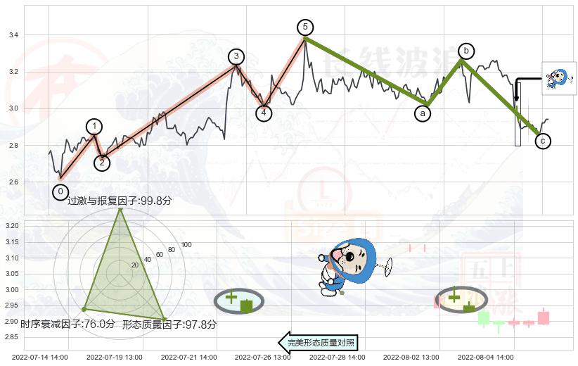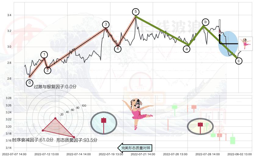 ➢ 🕰 价格走势在2022-08-02 14:00:00至2022-08-03 13:00:00期间形成下跌螺旋桨,残存影响值:-7.66