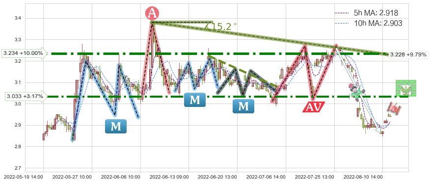 ♘ 阻力价格位3.033,可信任强度83.84%,距离最后交易2022-08-12 14:00形成的收盘价格2.940相差 +3.17%