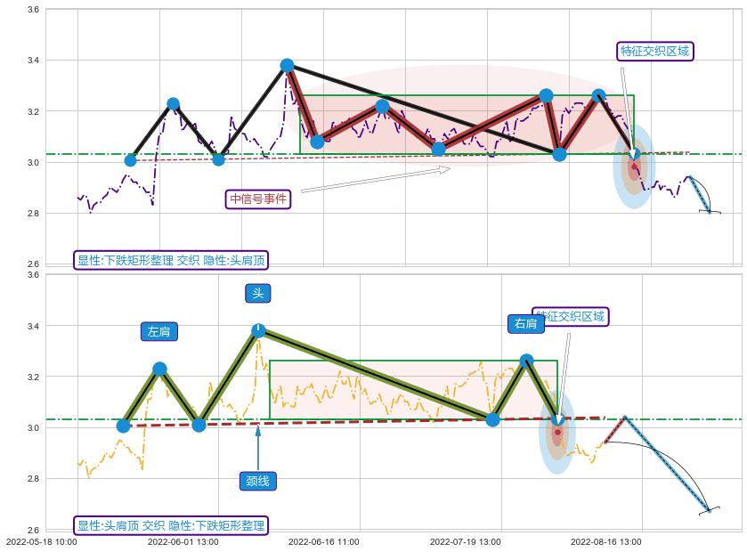 ➢ 头肩顶支撑破位转换阻力下跌 🔜 下跌矩形整理支撑破位转换阻力下跌 综合量化分数:36.06 【强烈看空】