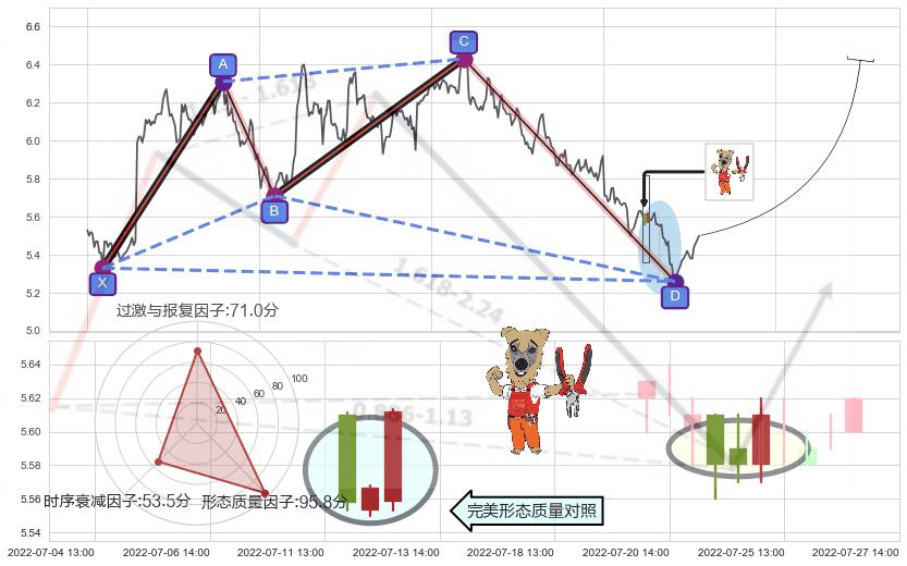 ➢ 上涨镊子线(U形磁铁) 🔜 谐波鲨鱼d拐点上涨支撑 综合量化分数:50.45 【中性】