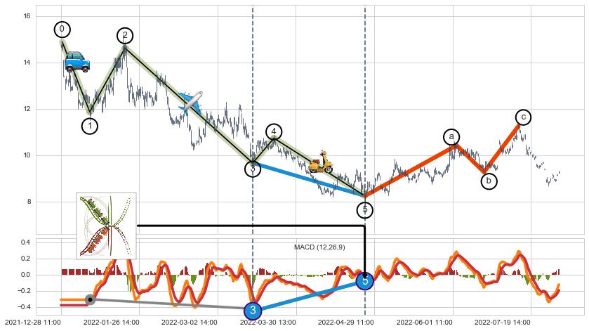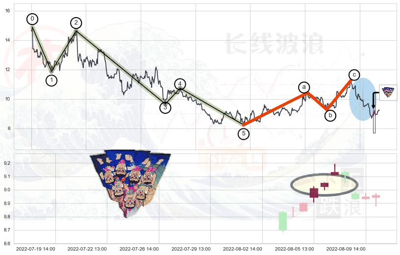 ➣ 波浪理论:猜想达到c点后小反弹终止反转下跌 → 下跌 → 【拐点】临近 → 阶段均值回复结束后继续大周期趋势跟踪