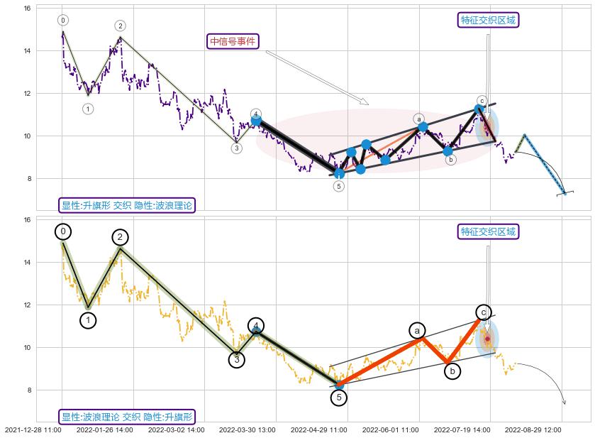➣ 吊颈线(上吊线) + 波浪理论c点反弹终止反转下跌信号叠加后【信号初始稳固度】中等,【看空】信号叠加【可信度影响中等】