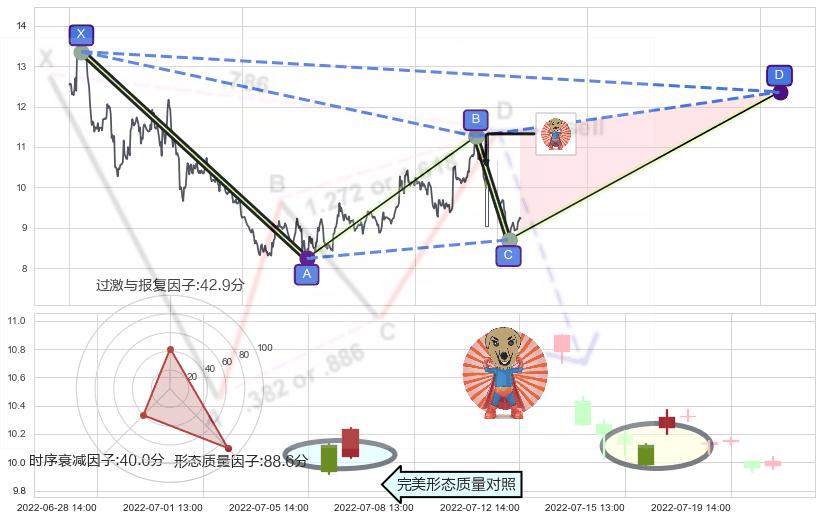 ➣ BC回撤位置在AB的84.8%,符合形态要求