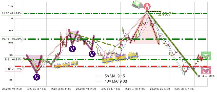 ♘ 支撑价格位9.05,可信任强度71.22%,距离最后交易2022-08-12 14:00形成的收盘价格9.23相差 -1.92%