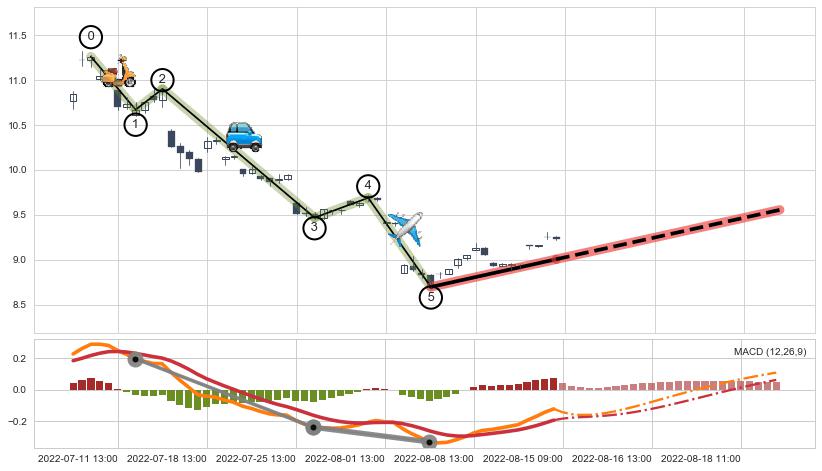 ➢ 最后的下跌趋势2022-07-07 14:00至2022-08-11 14:00:存在突破迹象,后续小反弹或者反转上涨