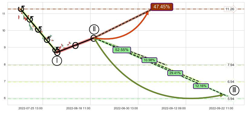 ➢ 循环浪继续向下【最低】位置(09-22:11, 5.94),匹配聚类样本比例23.14%, 可能性概率12.16%