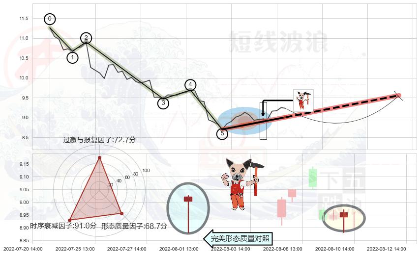 ➢ 🕰 价格走势在2022-08-10 13:00:00至2022-08-10 13:00:00期间形成锤头线(锤子线),残存影响值:6.78