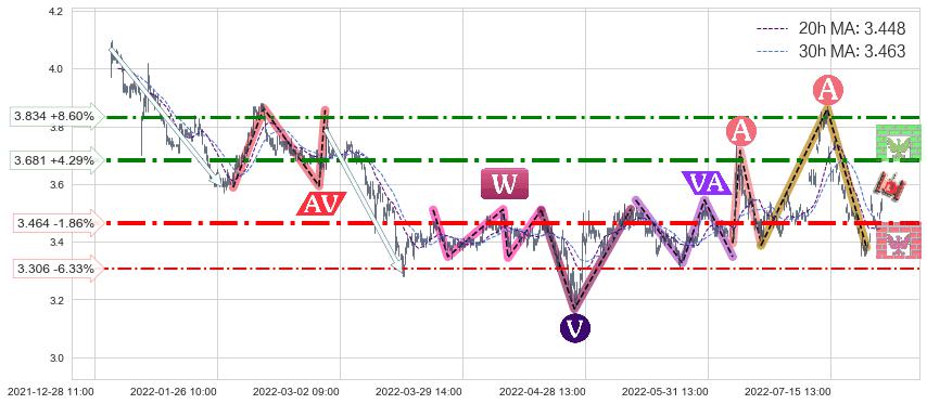 ♞ 20小时均线:3.448,30小时均线:3.463→ 快线<慢线