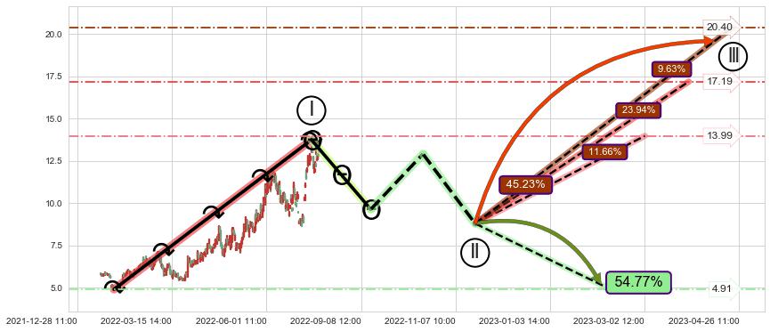 ➢ 大趋势走坏(跌破5浪起点位置)概率54.77%