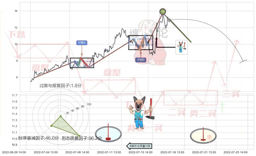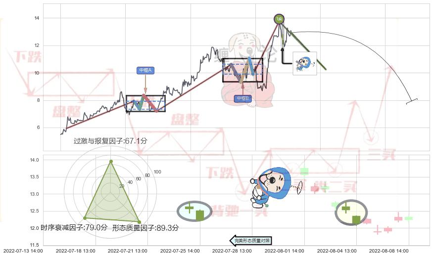 从2022-07-12 14:00至2022-08-12 14:00,共包含46个小时,阶段股价上涨41.94%,阶段股价变动位移路程比: 1 : 2