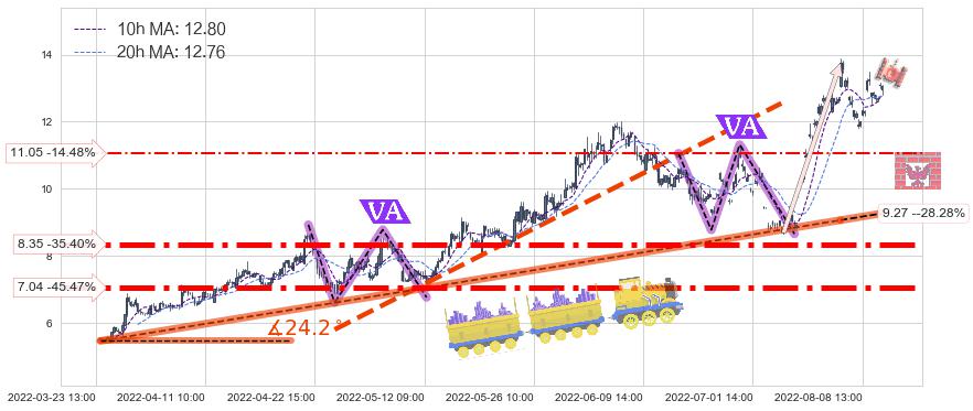 ♞ 10小时均线:12.80,20小时均线:12.76→ 快线>慢线