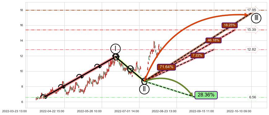 ➢ 循环浪继续向上【最低】位置(09-15:11, 12.82),匹配聚类样本比例10.08%, 可能性概率7.22%