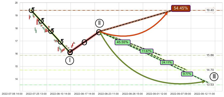 2022-07-22: 第一阻力位17.65有效抑制了下跌浪,成功阻止了价格的继续下跌。