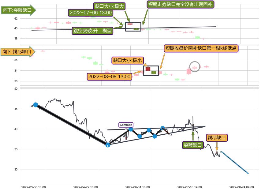 ➢ 2022-08-08 13:00形成:向下跳空【竭尽】缺口