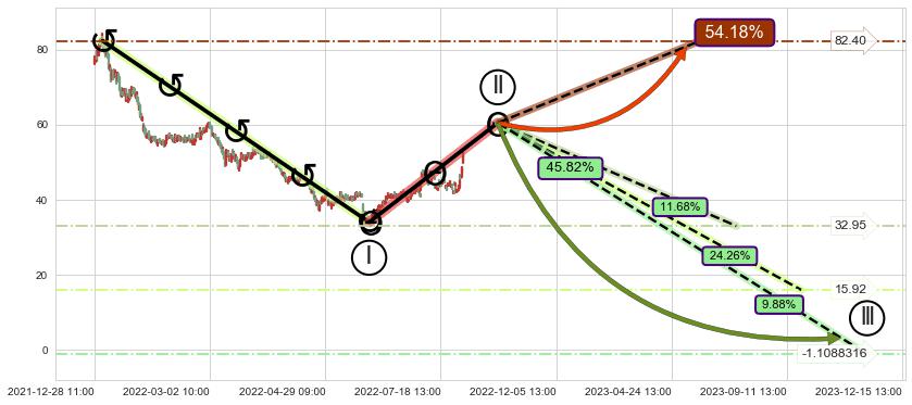 ➢ 上涨螺旋桨形态 + 波浪理论b蓄力反弹上涨至c信号叠加后【反向回撤率】偏高,【看多】信号叠加【存续影响降权】