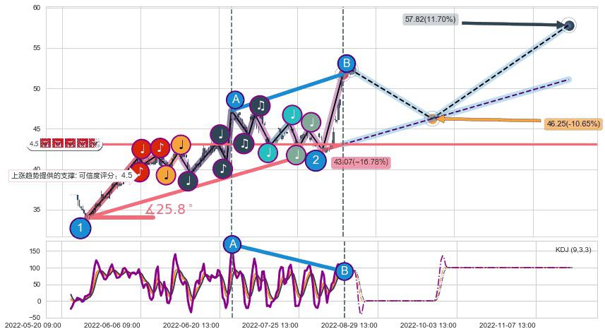 ➣ 预测:2022-09-22 13:00,【小幅回撤】稳定目前上涨趋势的前提下,预测价格:46.25