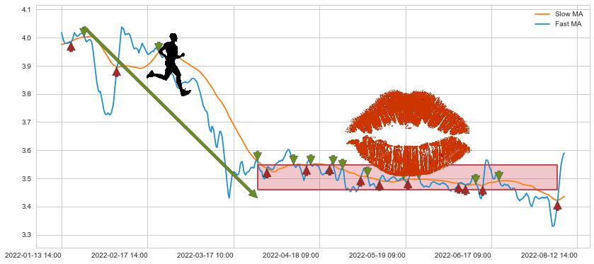 03-24 14:00至08-08 14:00 慢线与快线多次接触,存在上下穿越,有缠绕
