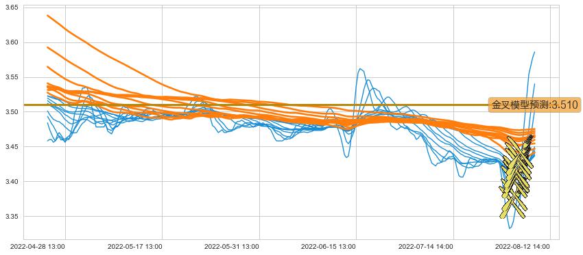 ➢ 70小时均线于(08-08 13:00: 3.432)形成【金叉】基于【金叉历史模型】预测金叉后最高波峰价格: 3.536, 金叉后最高价格3.590,已经上涨超出预测最高波峰价格, 预期回调