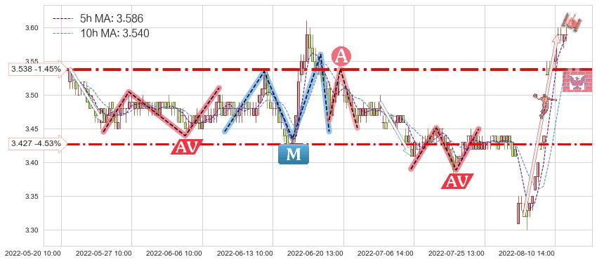 ♞ 5小时均线:3.586,10小时均线:3.540→ 快线>慢线