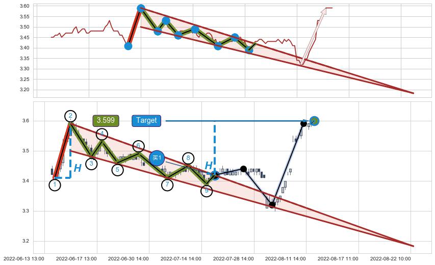 ➣ 08-09:13到达第❷价格目标位置3.530
