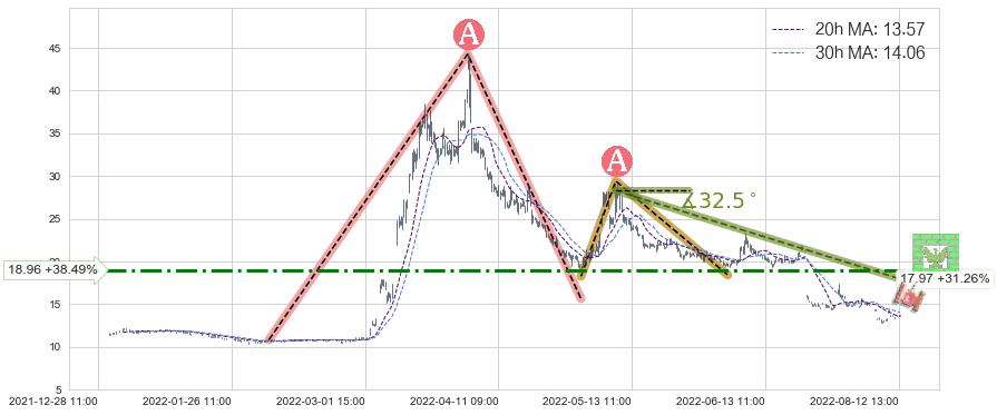 ♞ 20小时均线:13.57,30小时均线:14.06→ 快线<慢线