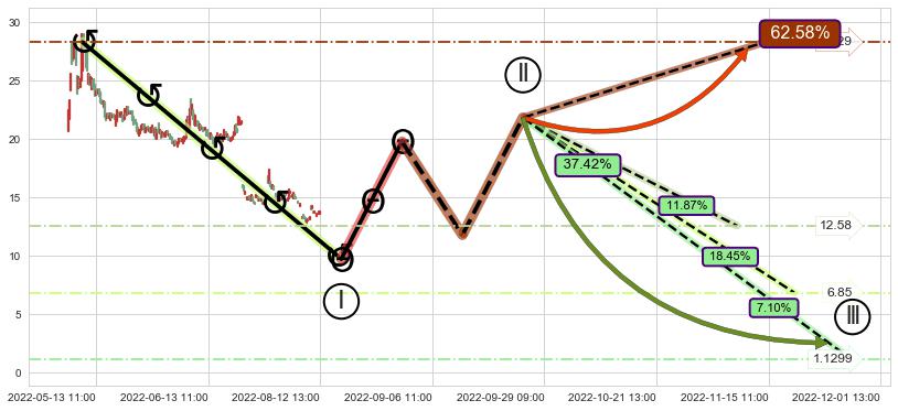 ➣ 波浪理论:猜想下跌浪5即将形成,随后猜想后续形成abc反弹上涨(均值回复)
