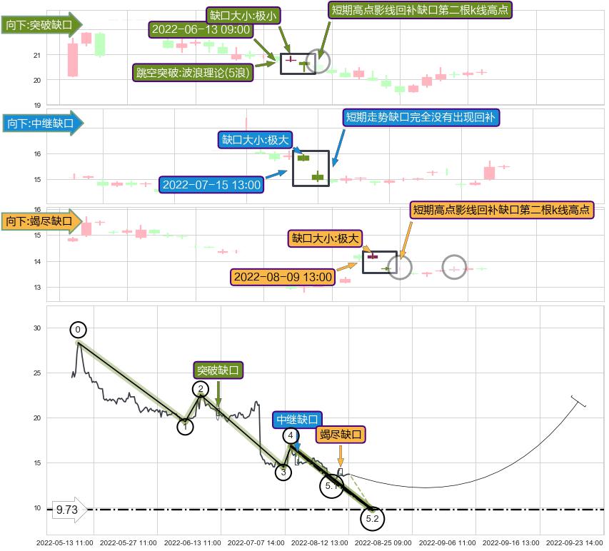 ➢ 2022-08-09 13:00形成:向下跳空【竭尽】缺口