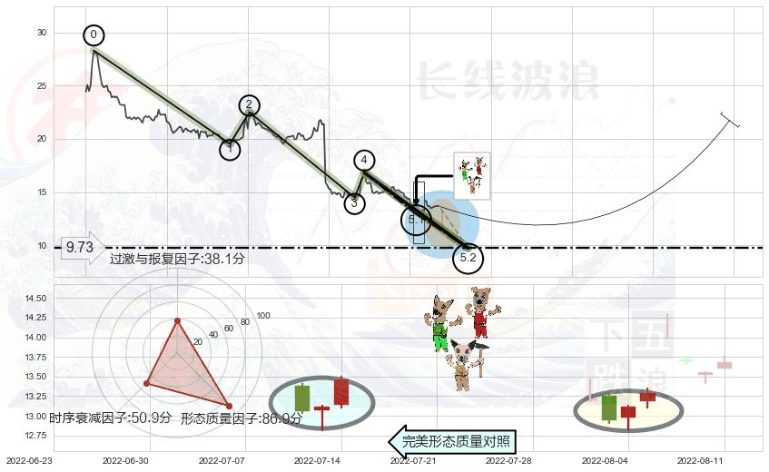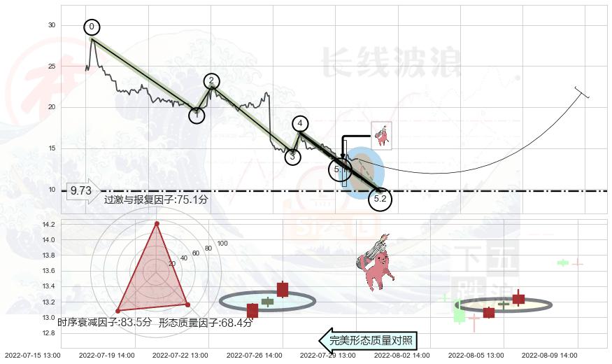 从2022-05-11 09:00至2022-08-12 14:00,共包含214个小时,阶段股价下跌-64.77%,阶段股价变动位移路程比: 1 : 4,下跌趋势角度: 32.5