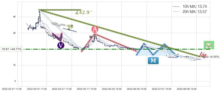🦴 长线均值回复组合短线趋势跟踪[强阻力信号]2022-03-31 09:00-2022-08-12 13:00下跌趋势依然成立(下跌趋势跟踪依然存在),短线价格略微上行反弹(均值回复猜想),即将接近下跌趋势提供的未破位阻力价格:15.00。