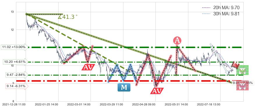 ♞ 20小时均线:9.70,30小时均线:9.81→ 快线<慢线
