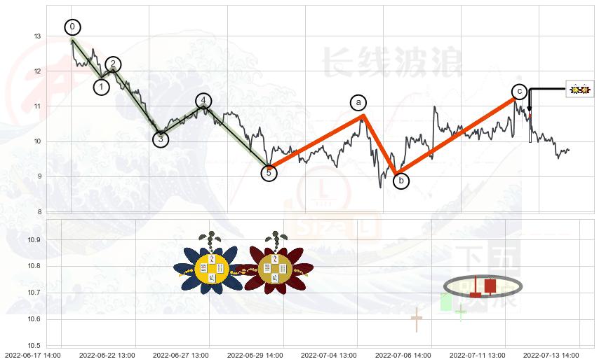 ➣ 波浪理论:猜想击穿突破c点后继续上涨 → 上涨 → 机会信号 → 小趋势跟踪