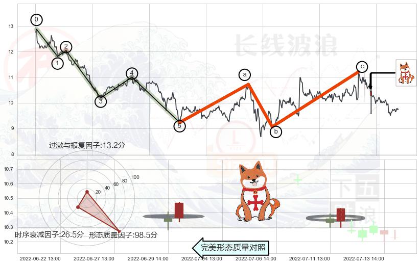 ➢ 🕰 价格走势在2022-07-13 14:00:00至2022-07-13 14:00:00期间形成单针探底(定海神针),残存影响值:3.29