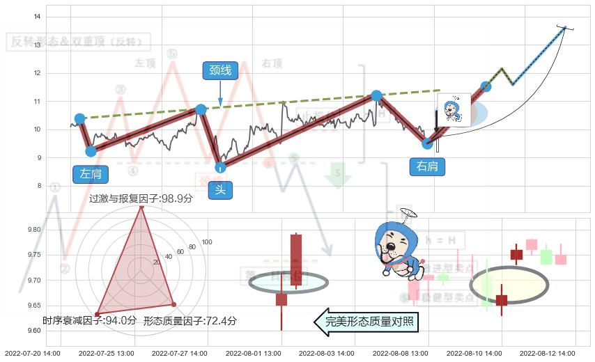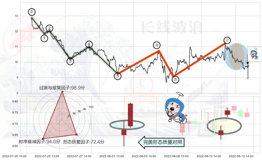 ➢ 🕰 价格走势在2022-08-10 14:00:00至2022-08-11 13:00:00期间形成上涨螺旋桨形态,残存影响值:7.61