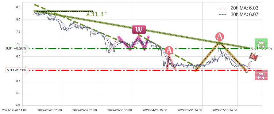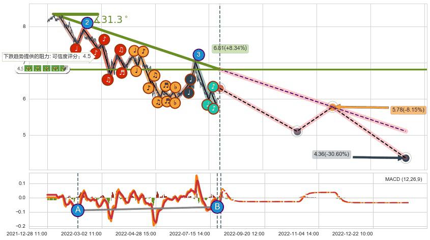 ♘ 阻力价格位6.81,可信任强度75.59%,距离最后交易2022-08-12 14:00形成的收盘价格6.29相差 +8.28%