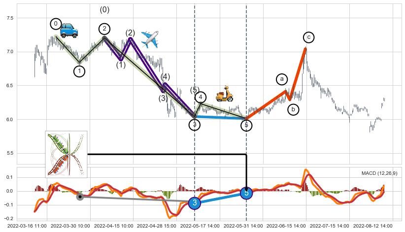 ➢ 波浪理论:猜想达到c点后小反弹终止反转下跌 → 下跌 → 【拐点】临近 → 阶段均值回复结束后继续大周期趋势跟踪