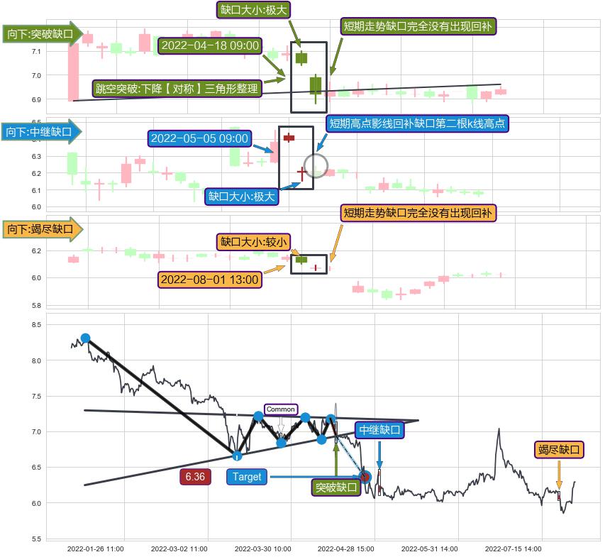 ➢ 2022-08-01 13:00形成:向下跳空【竭尽】缺口