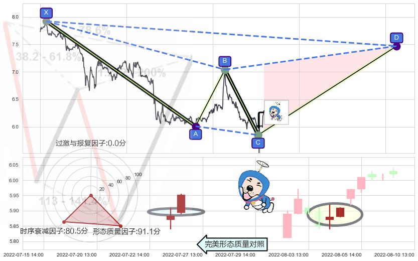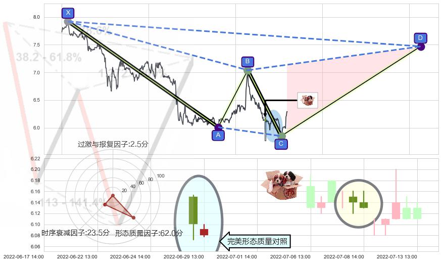 ➢ 上涨螺旋桨形态 🔜 谐波赛福下沉击穿c上涨拐点 综合量化分数:58.63 【偏多】