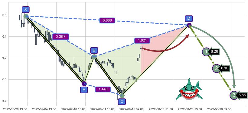 ➣ 未完成【鲨鱼】形态起点X: 06-17:14, 已到达C点: 08-03:14, 预测最终D点: 08-22:10, 共112交易小时