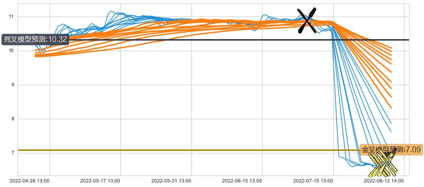 ➢ 45小时均线于(07-01 14:00: 10.88)形成【死叉】基于【死叉历史模型】预测死叉后最低波谷价格: 10.41, 死叉后最低价格6.53,已经下跌超出预测最低波谷价格, 预期反弹