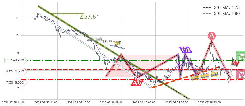 ♞ 20小时均线:7.75,30小时均线:7.80→ 快线<慢线