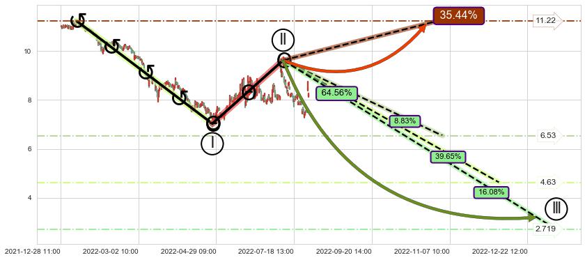 ♘ 支撑价格位8.05,可信任强度54.64%,距离最后交易2022-08-12 14:00形成的收盘价格8.18相差 -1.53%