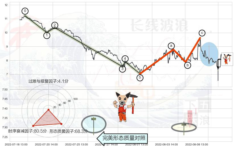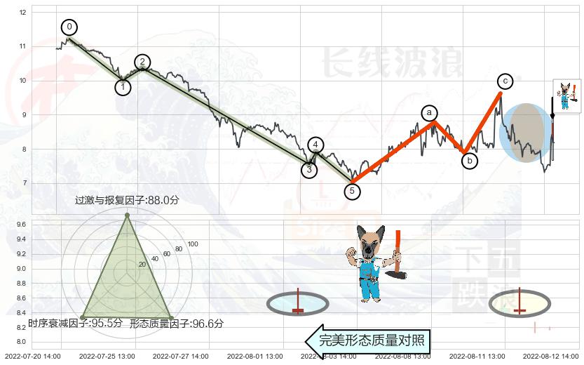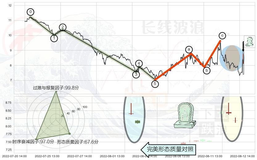 从2022-08-04 13:00至2022-08-12 14:00,共包含13个小时,阶段股价上涨11.79%,阶段股价变动位移路程比: 1 : 1.6
